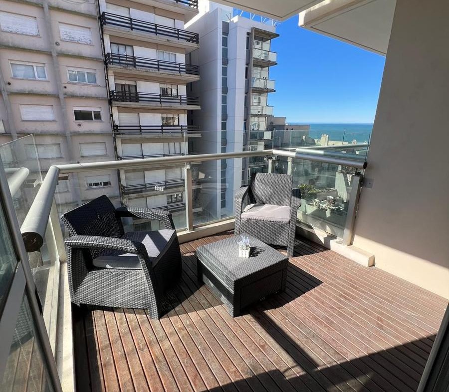En lo mejor de Playa Chica a pasos de la costa ofrecemos a la venta un departamento de 3 ambientes de 104 m2 totales con balcón terraza y vistas laterales al mar. Orientado al norte, la unidad es muy luminosa y cuenta con amplios ambientes. La unidad posee 2 cocheras, una de ellas cubierta en el subsuelo del edificio, y la otra es descubierta en la planta baja.