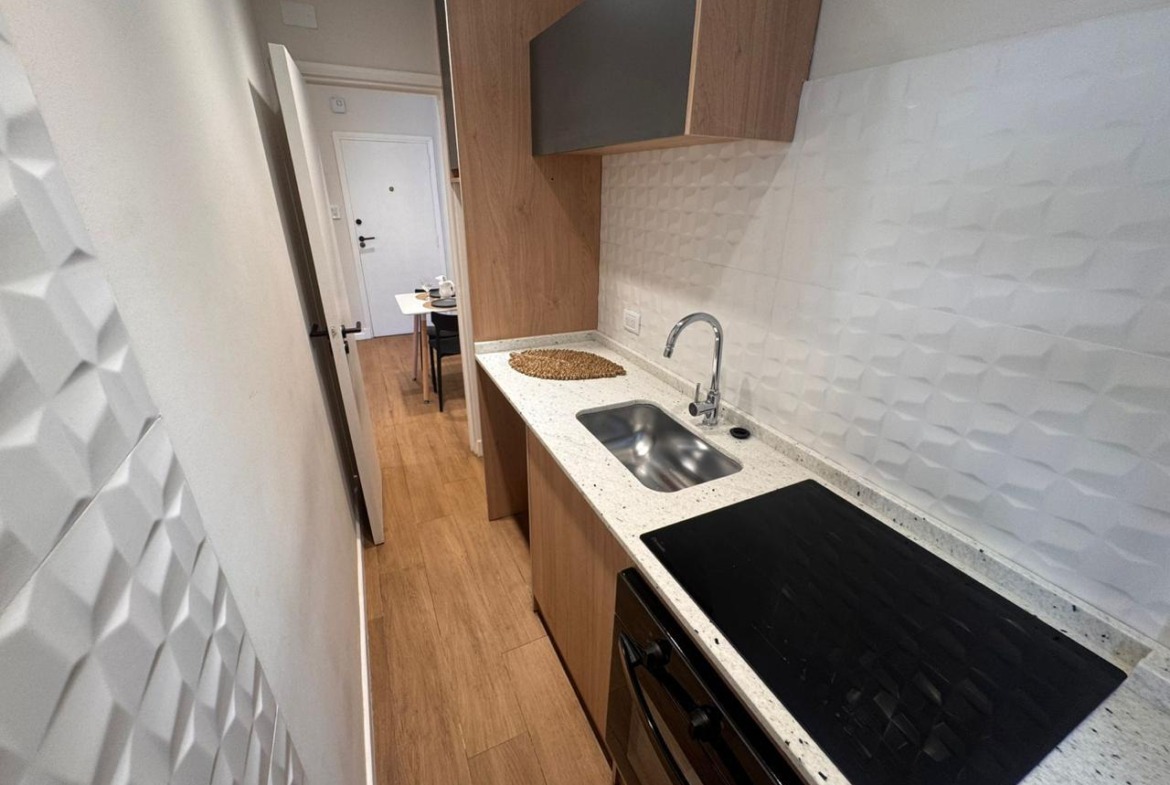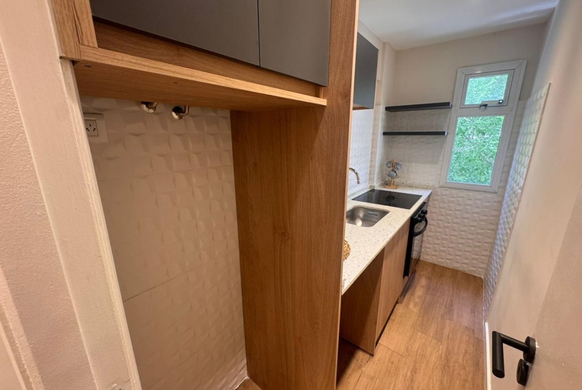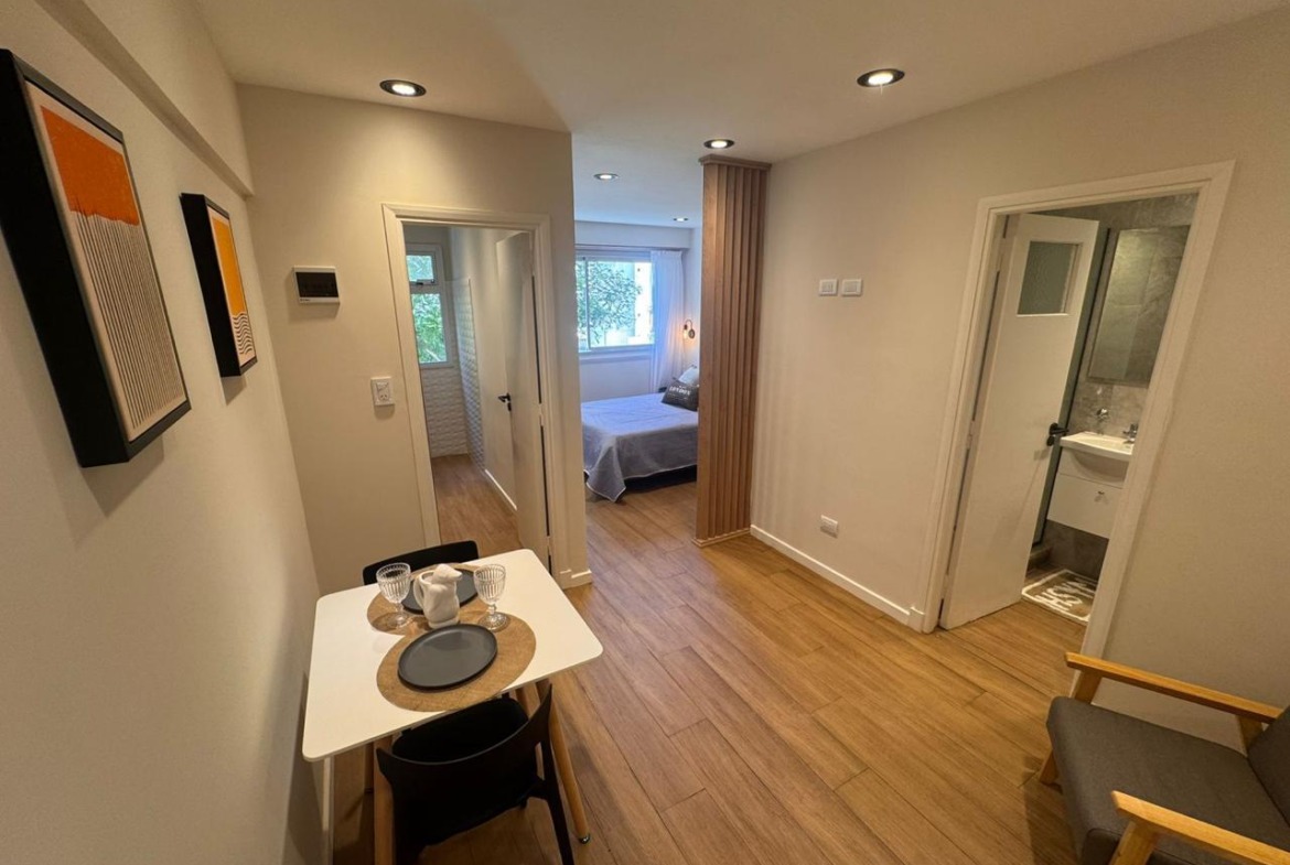 Se encuentra completamente reciclado a nuevo, cañerías e instalación eléctrica. Cocina separada con horno y anafe eléctrico. Termotanque eléctrico. Muebles de cocina a medida. Sector living con sillón de 1 plaza, equipado con juego de mesa y sillas. Dormitorio con placard, somier de dos plazas con respaldo. Baño completo con ducha, mampara. Mueble a medida con espacio y conexión de lavarropas. El edificio es eléctrico.